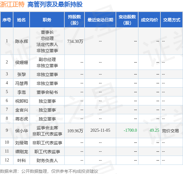 浙江正特近半年内的董监高及核心技术人员增减持详情如下: