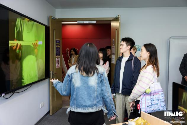 在文创学院充满现代艺术气息的大厅中,一场融合传统与未来的“获奖作品展”拉开帷幕。来自荷兰、比利时、韩国等国的评审专家、参赛选手及数字音乐爱好者齐聚一堂,时而驻足于智能音乐与影视音效实验室,沉浸于数字技术编织的丝路乐章;时而流连于以敦煌莫高窟藻井为灵感创作的艺术装置前,在互动中感受科技赋能传统文化的魅力。这场集中展示IDMIC获奖作品的数字音乐展与文创学院多个新文科实验室联动,让嘉宾在体验音乐创意的同时,也与最前沿的数字科技“零距离”对话,真切感知技术发展为文化创意领域带来的深刻变革。