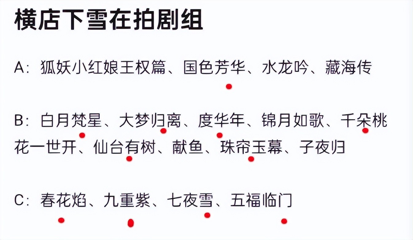 网络上流传一句话,横店下雪会出现爆剧,因为《甄嬛传》等剧拍摄的时候,横店就下雪了。根据统计,横店下雪的时候,共有17部剧在拍,目前都已经播出,其中有4部成为爆剧,而网友们都为成毅捏一把冷汗,各位读者,你们认为哪部剧最有潜力呢?